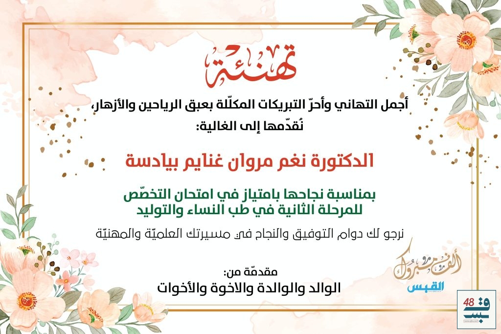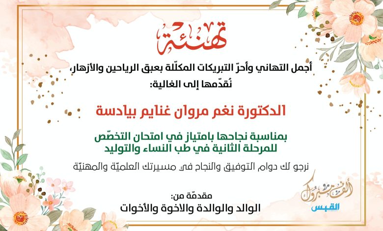 تهاني ومناسبات تهنئة مقدّمة للدكتورة نغم مروان بيادسة طاقم التحرير11/11/20250 1 أقل من دقيقة طاقم التحرير11/11/20250 1 أقل من دقيقة فيسبوك تويتر لينكدإن Tumblr بينتيريست Reddit VKontakte مشاركة عبر البريد طباعة
