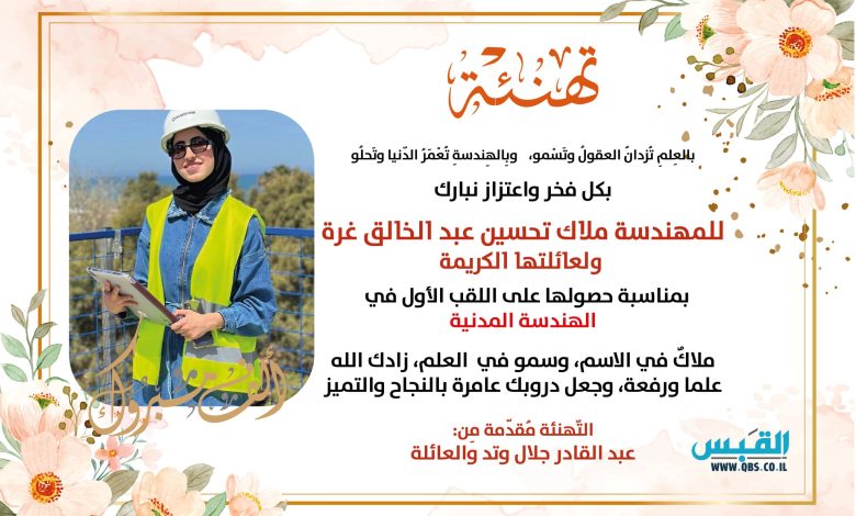 تهاني ومناسبات تهنئة مقدّمة للمهندسة ملاك تحسين عبد الخالق غرة ولعائلتها الكريمة طاقم التحرير06/11/20250 0 أقل من دقيقة طاقم التحرير06/11/20250 0 أقل من دقيقة فيسبوك تويتر لينكدإن Tumblr بينتيريست Reddit VKontakte مشاركة عبر البريد طباعة