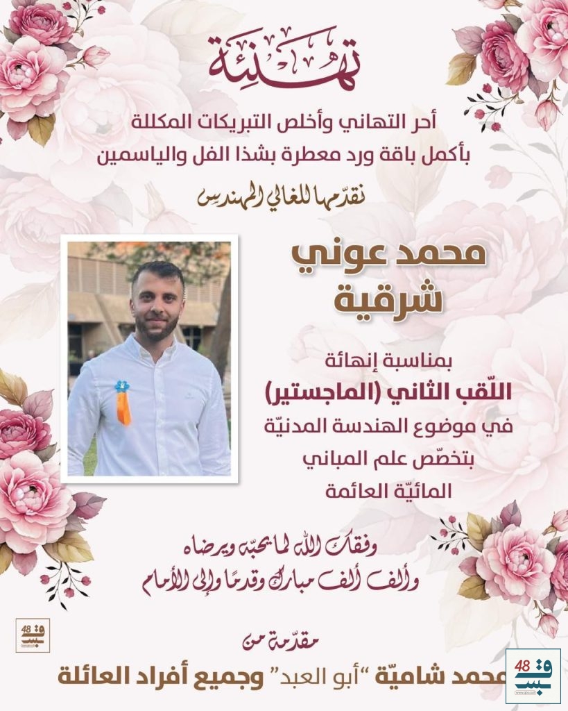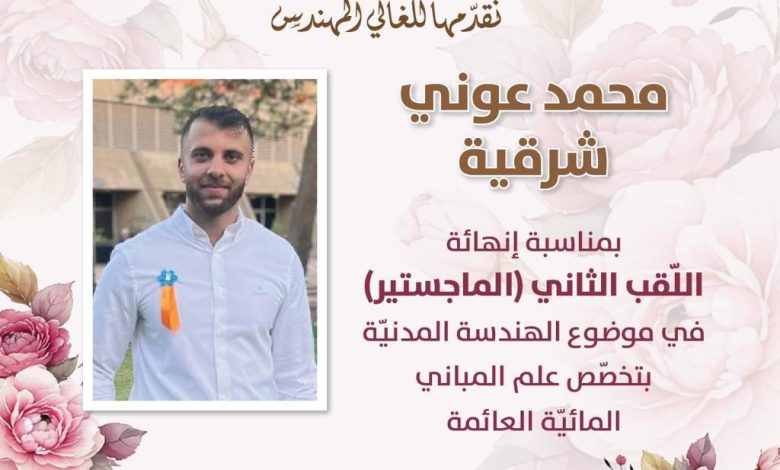 تهاني ومناسبات تهنئة مقدّمة للمهندس محمد عوني شرقية طاقم التحريرمنذ يومين0 2 أقل من دقيقة طاقم التحريرمنذ يومين0 2 أقل من دقيقة فيسبوك تويتر لينكدإن Tumblr بينتيريست Reddit VKontakte مشاركة عبر البريد طباعة
