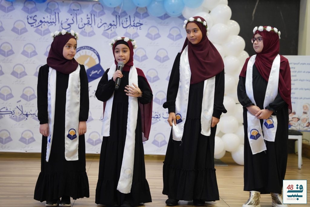 وتخلّل الحفل المبارك فقرات تربوية هادفة، عكست مكانة علوم القرآن الكريم وأهميّة التعمّق في أحكامه وفهمه والعمل به، إلى جانب موعظة إيمانية مؤثّرة قدّمتها الداعية الفاضلة أحلام إغباريّة، لامست القلوب ورسّخت معاني الثبات والإخلاص.
