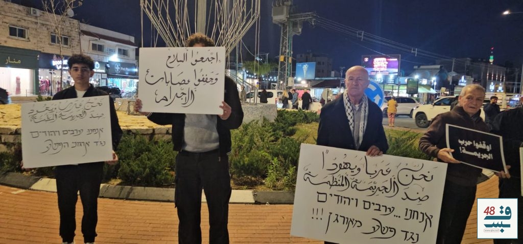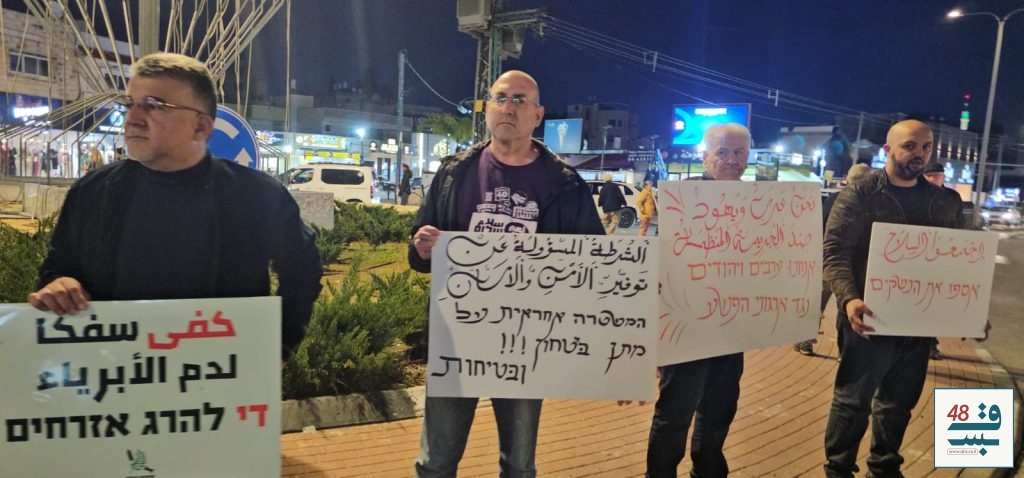 ورفع المشاركون لافتات استنكرت جرائم العنف والجريمة، وطالبت المؤسسة الرسمية والشرطة بتحمّل مسؤولياتهما كاملة تجاه حالة الفوضى وانعدام الأمان، والعمل الجاد والفوري على فرض النظام وحماية أرواح المواطنين وممتلكاتهم.