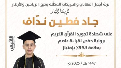 تهنئة مقدّمة للطالب المتميّز جاد فطين نداف